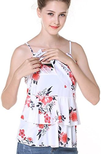 Women Double Layered Floral Maternity Breastfeeding And Nursing Tank Top Cami Shirts